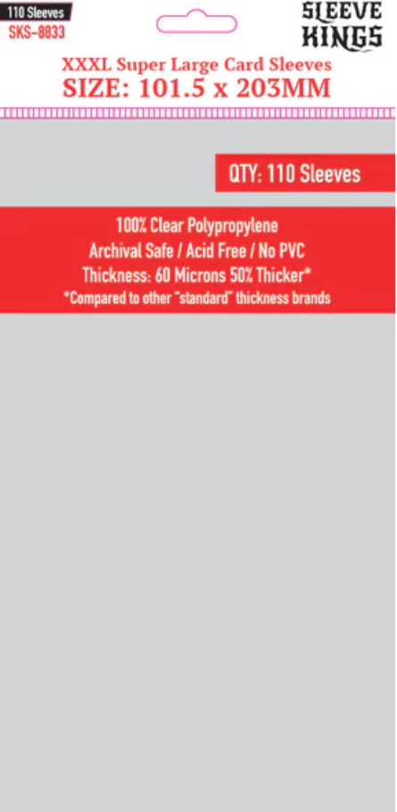 Máxima protección para cartas jumbo. 110 protectores Sleeve Kings (101.5x203 mm), calibre 60. Evita el desgaste. ¡Compra y protege hoy!